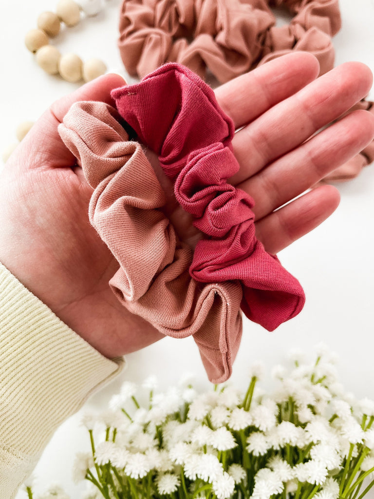 Pink Cotton Lycra Scrunchies: Blush & Rose Set