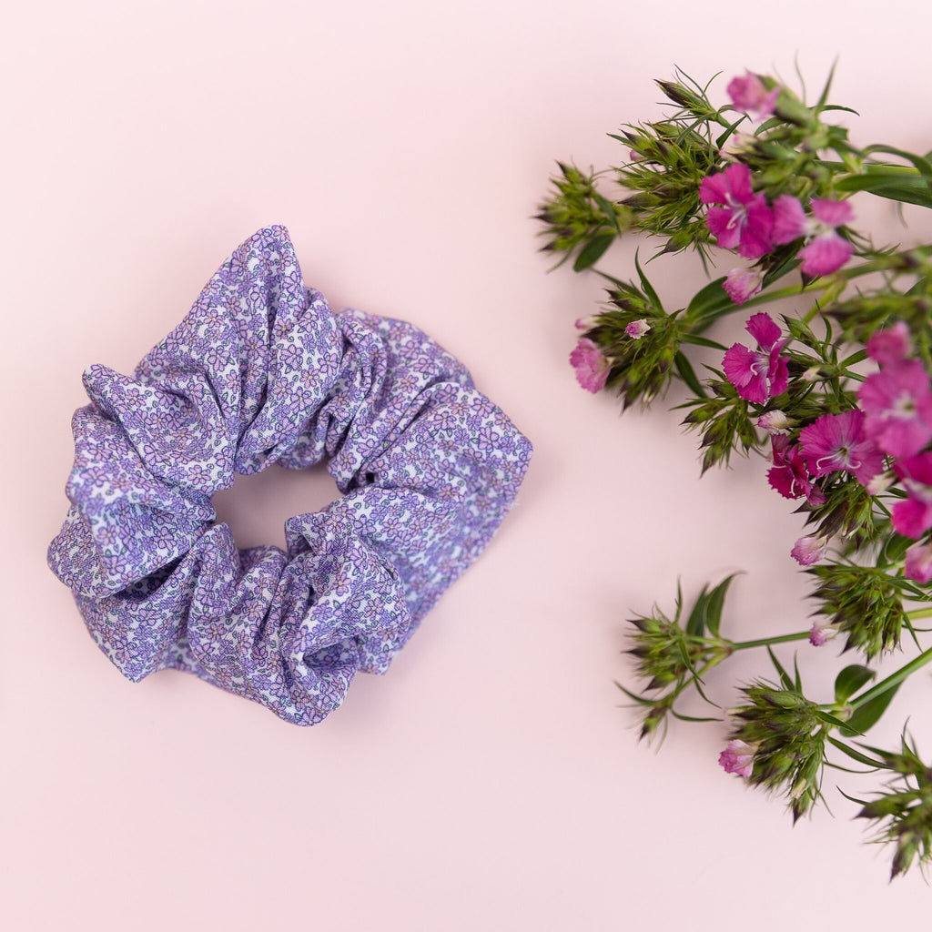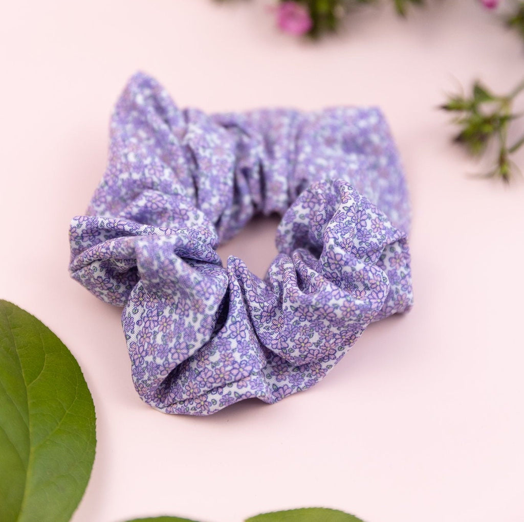 Purple Floral Scrunchie: Rayon Challis Fabric Hair Tie