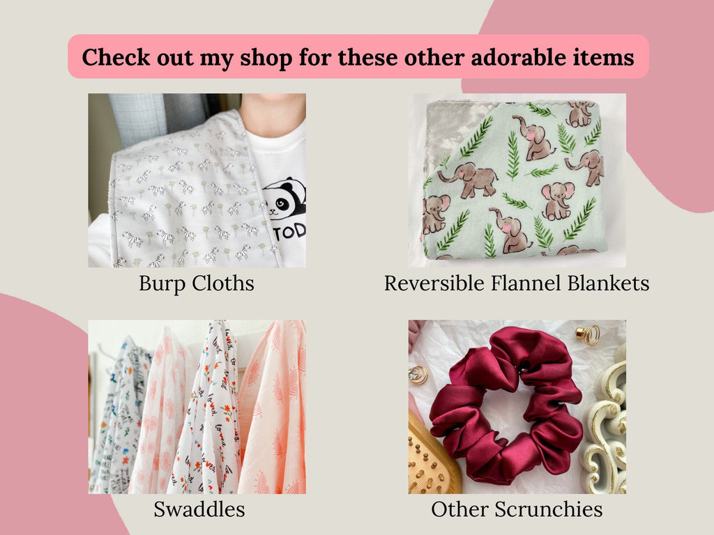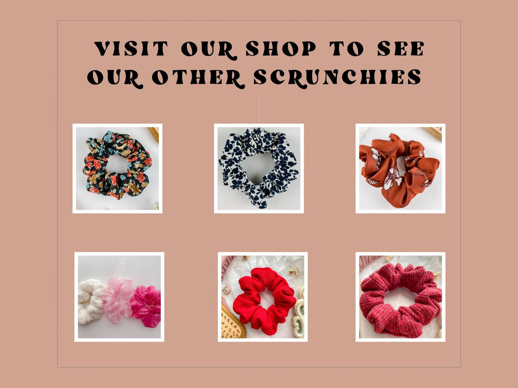 *Scrunchies can be hand washed or spot cleaned with warm soapy water, then hang to dry.