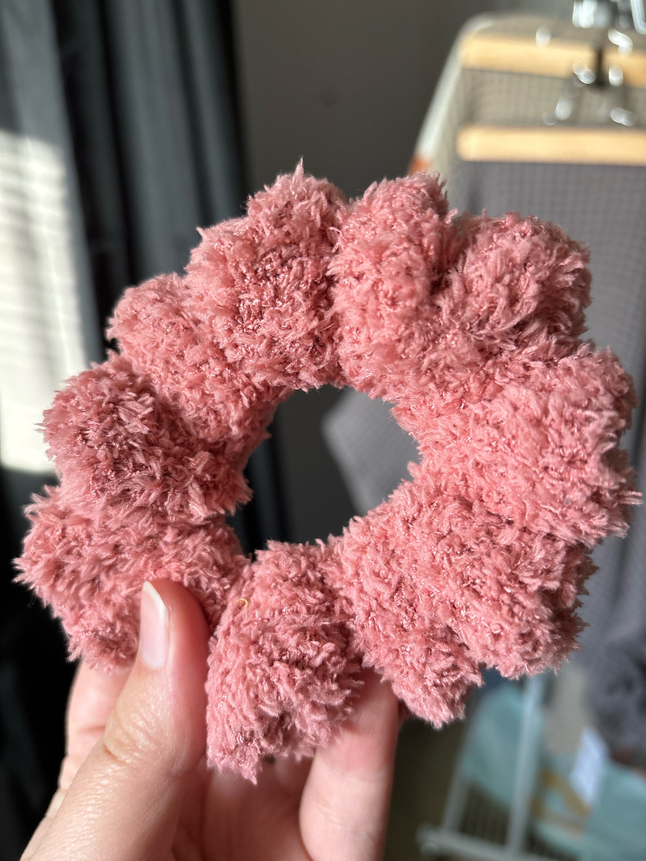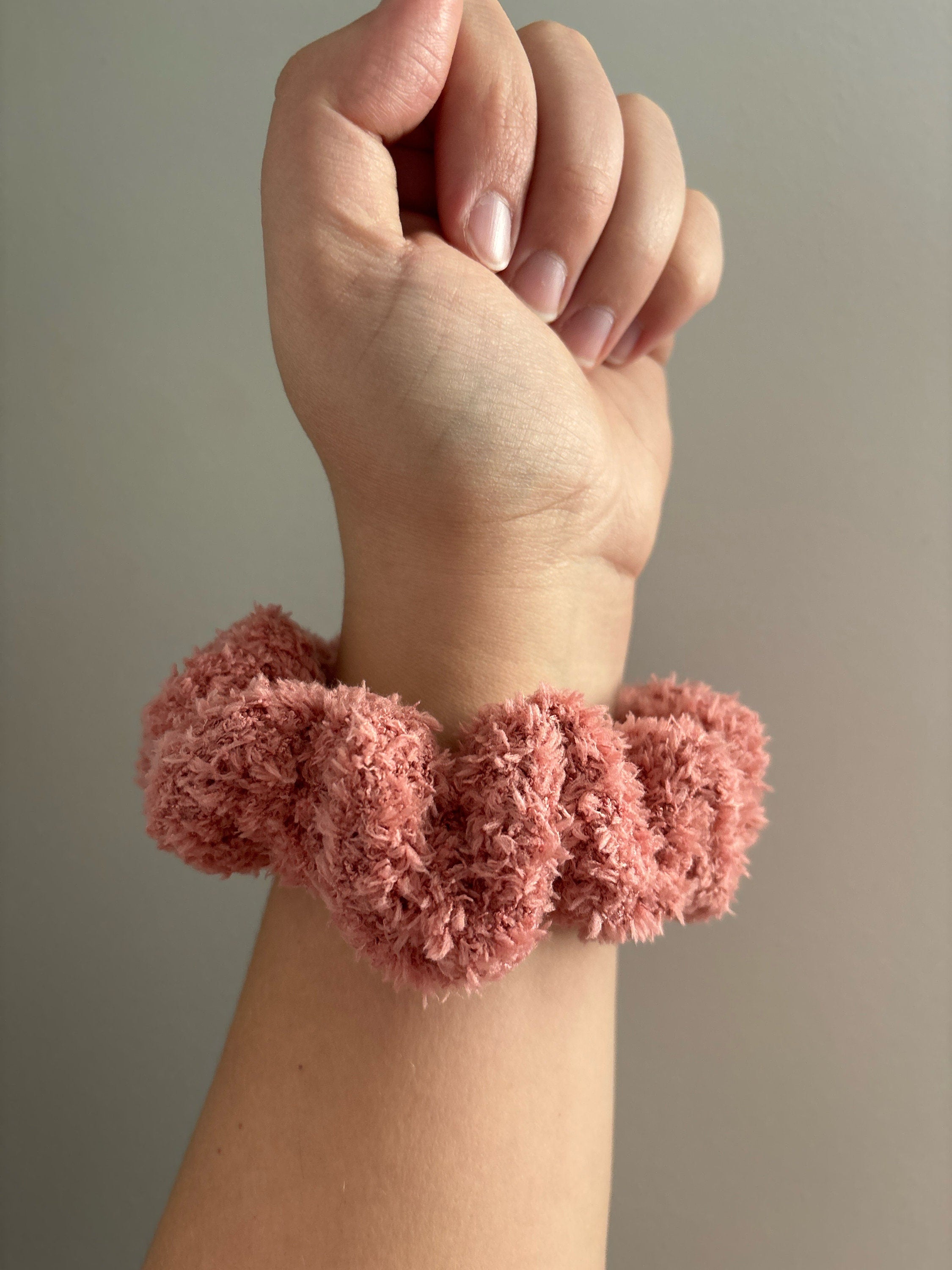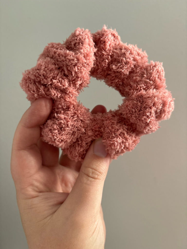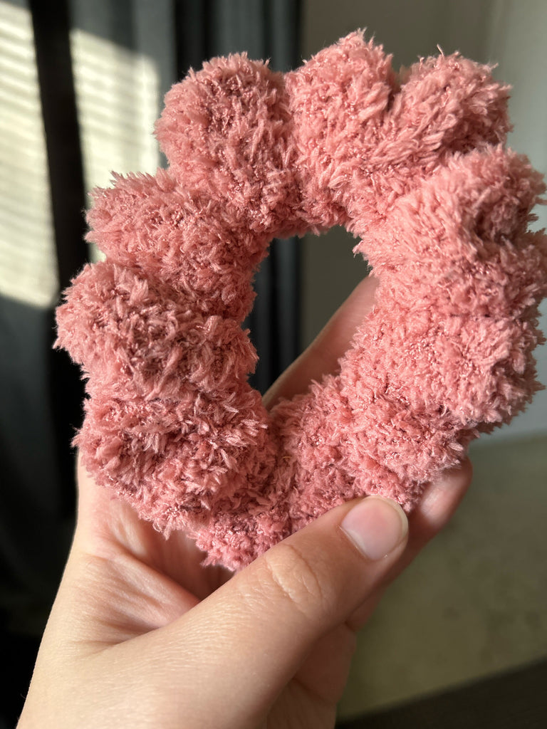 *Listing is for one pink fuzzy knit scrunchie.